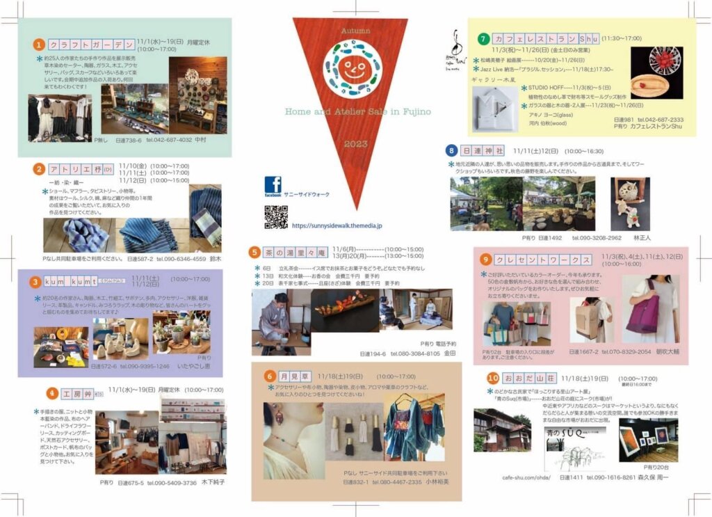 日連の10ヶ所のお店や家、テントでアートクラフト作品の展示販売が行われます。
